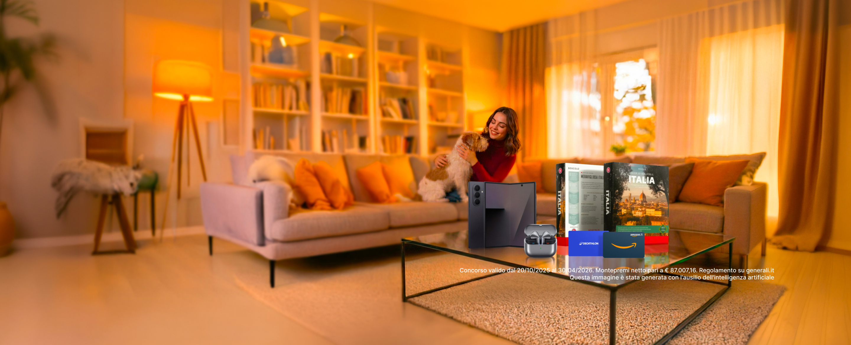 Concorso “Lasciati sorprendere” valido dal 20/10/2025 al 30/04/2026. Montepremi netto pari a € 87.0007,16. Regolamento disponibile su generali.it.